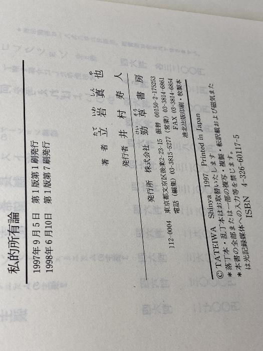 商品名:私的所有論 勁草書房 立岩真也