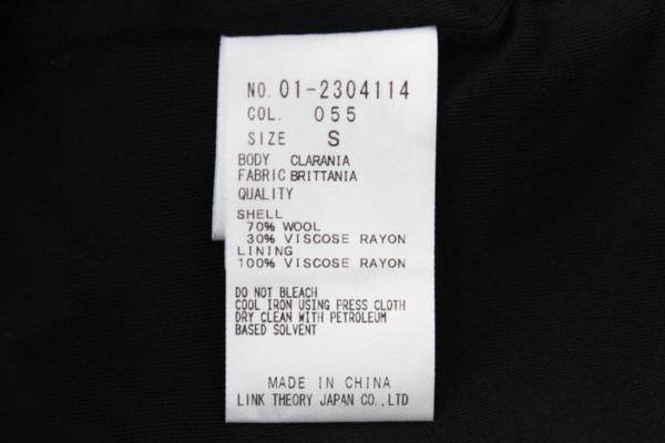【色・素材】 黒・表地:毛70%レーヨン30%/裏地:レーヨン100%