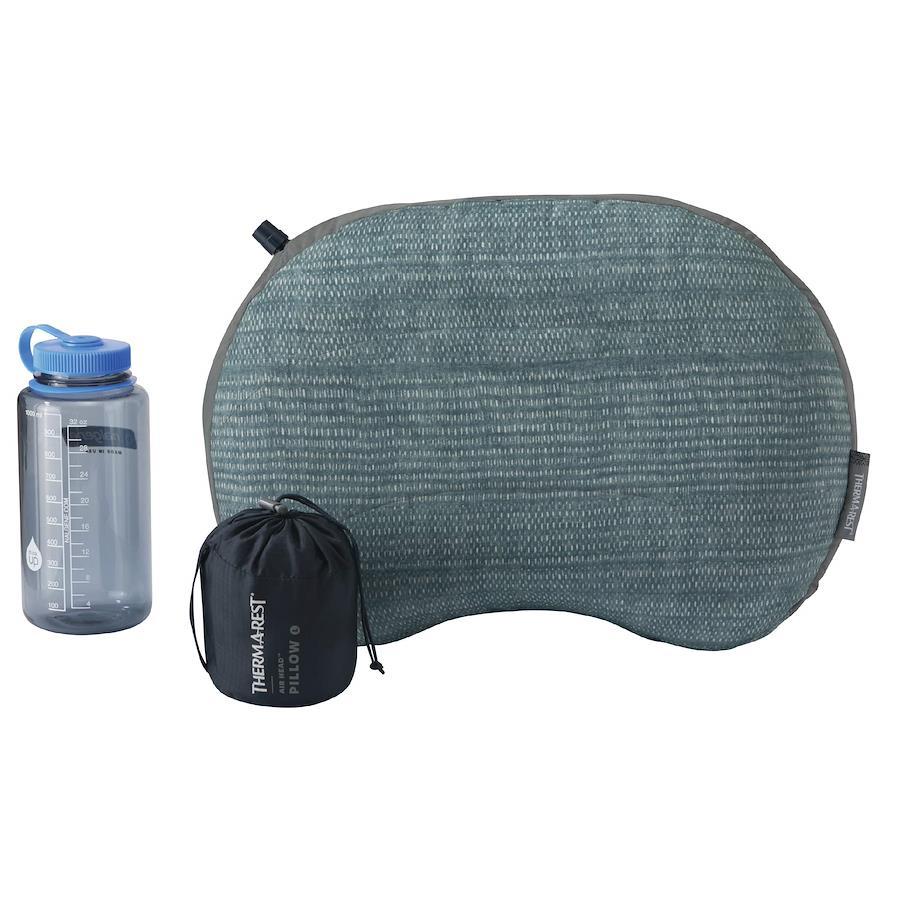コンパクトに収納できる空気注入式の枕です。肌触りのよい起毛素材のカバーは取り外して洗濯可能。スリーピングバッグのフードにぴったり収まるデザインです。