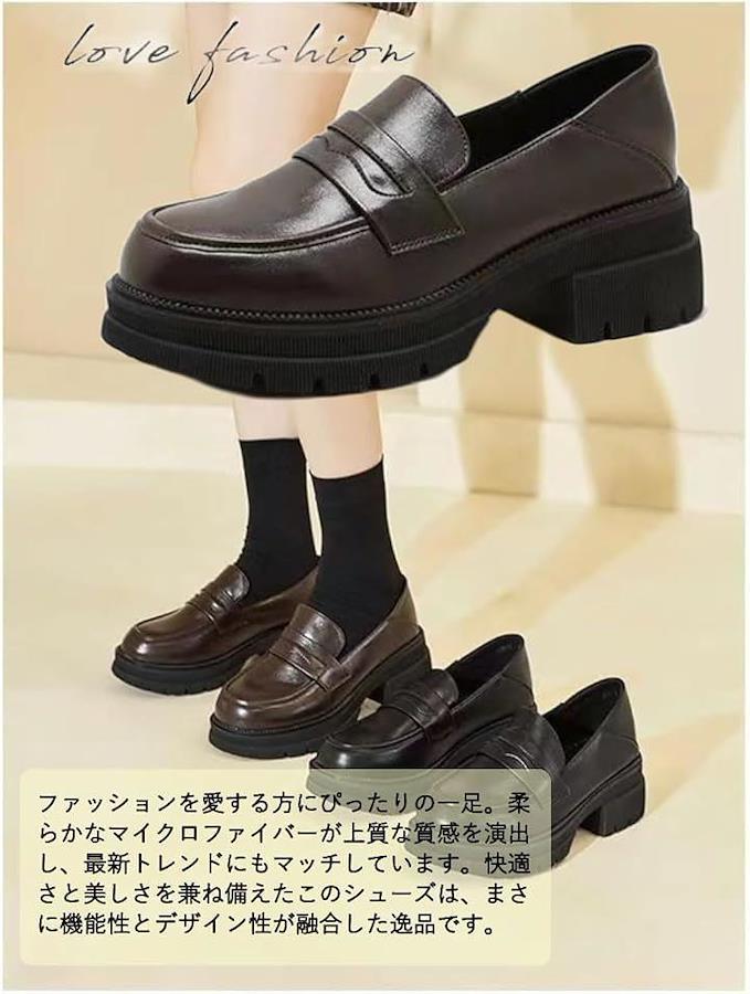 厚底のレディースパンプス、太ヒールで安定感抜群。