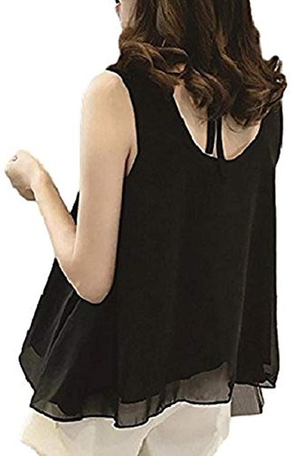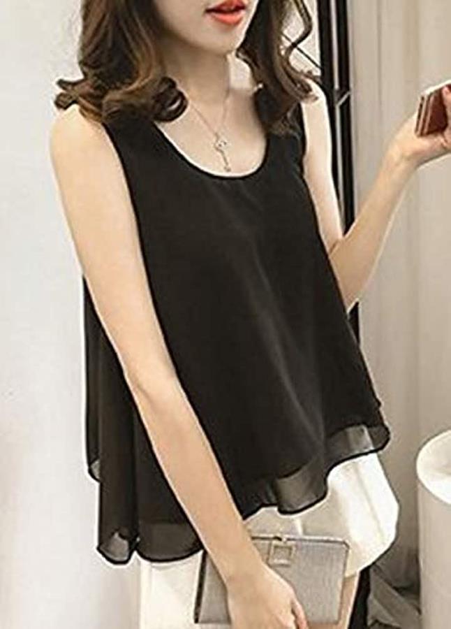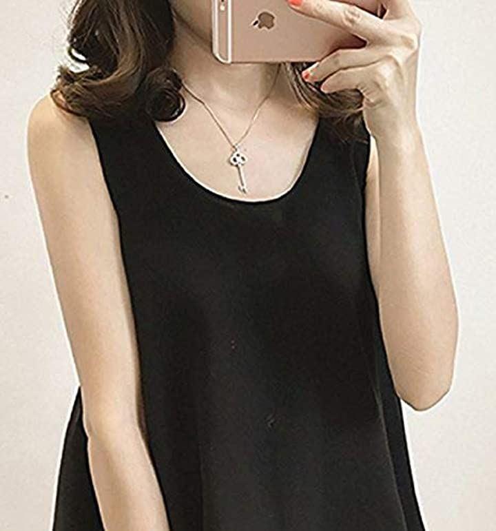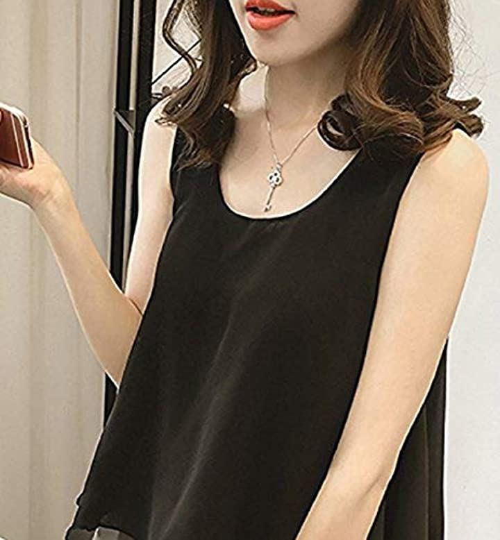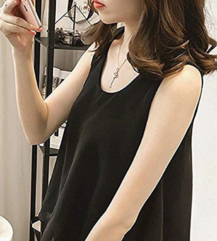 Thick Adult Chiffon Tank Top Tunic Blouse with Sleeveless Ribbon Women's