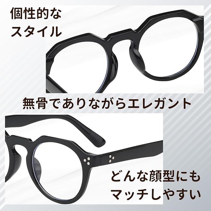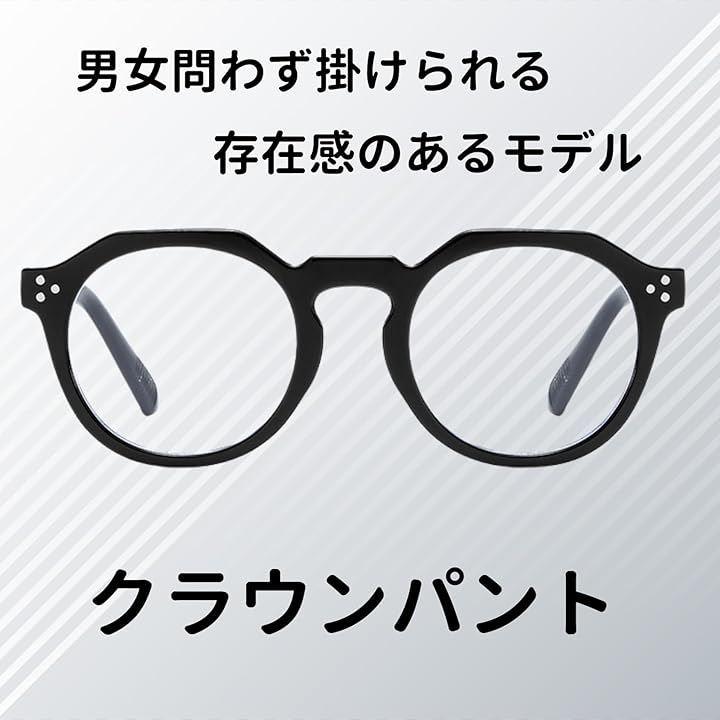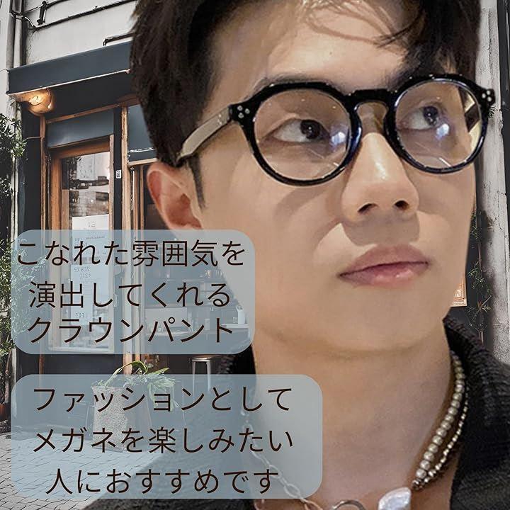 この眼鏡は、ファッションに敏感なメンズ・レディース両方に適しており、どんな服装にもマッチするクラウンパント形状の黒縁が特徴です。