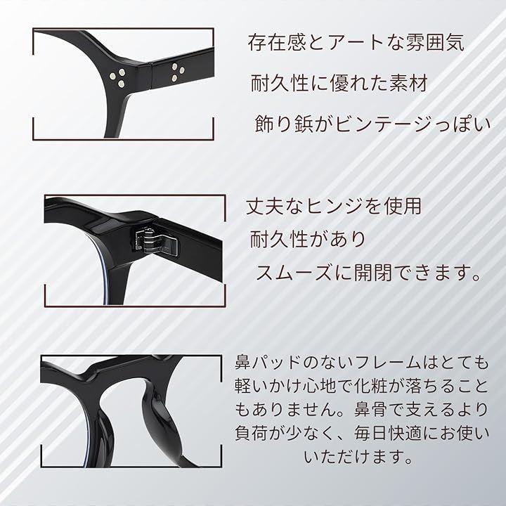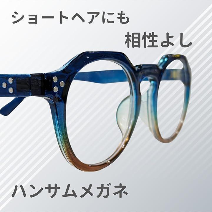 この眼鏡は、ファッションに敏感なメンズ・レディース両方に適しており、どんな服装にもマッチするクラウンパント形状の黒縁が特徴です。