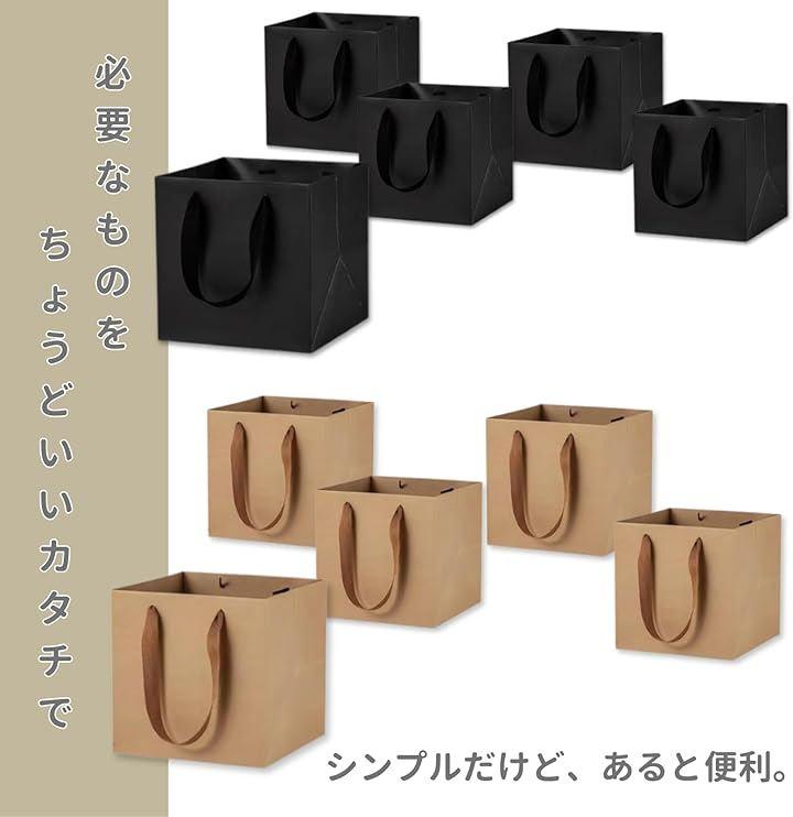 「商品詳細」厚手クラフト紙袋x5枚セット カラー:クラフト紙 / ブラック サイズ:15x15x15cm / 20x20x20cm / 25x25x25cm / 30x30x30cm このクラフト紙袋は、高い耐久性とエコ性能を兼ね備え、シンプルでおしゃれなデザインが特徴です。