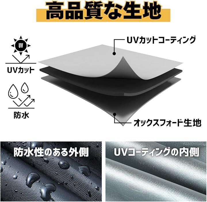 強力防水・撥水・UVカットで全天候から保護」 防水・撥水コーティング加工により、ゲリラ豪雨や雪から車体を徹底ガード。