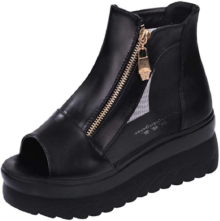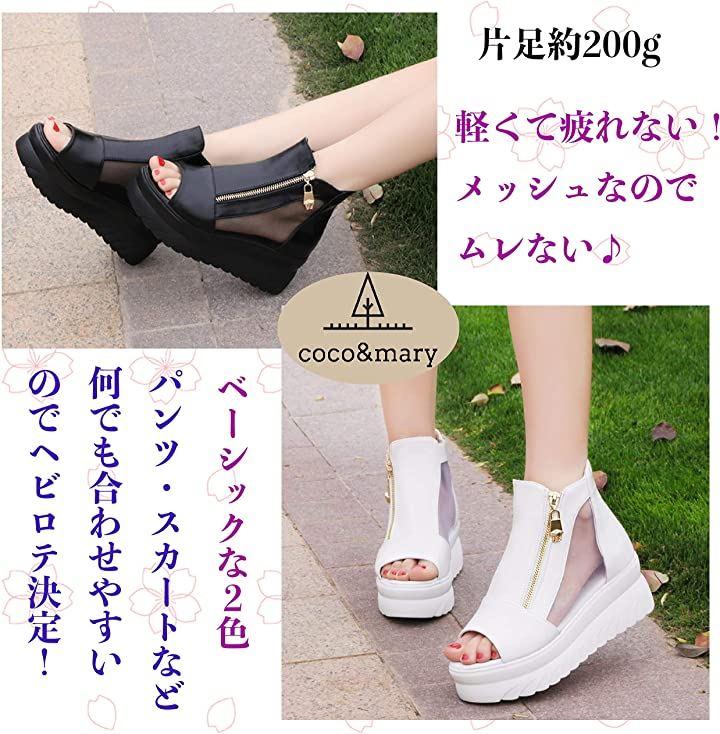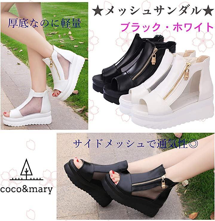 ・メイン素材: メッシュ・表地: フェイクレザー・ヒール高さ6cm・ウェッジソールで安定感のある厚底サンダル。