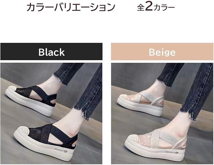 「2つのカラーバリエーション」この厚底レースサンダルは、黒色とベージュの2つのカラーバリエーションで展開しています。