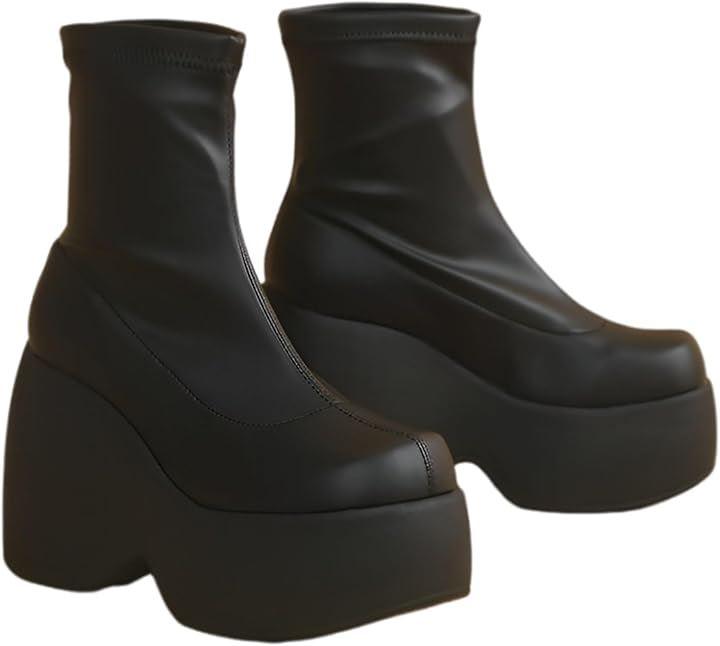 ストレッチ素材を使用した、存在感のあるボリュームソールがかわいい厚底ショートブーツです。
