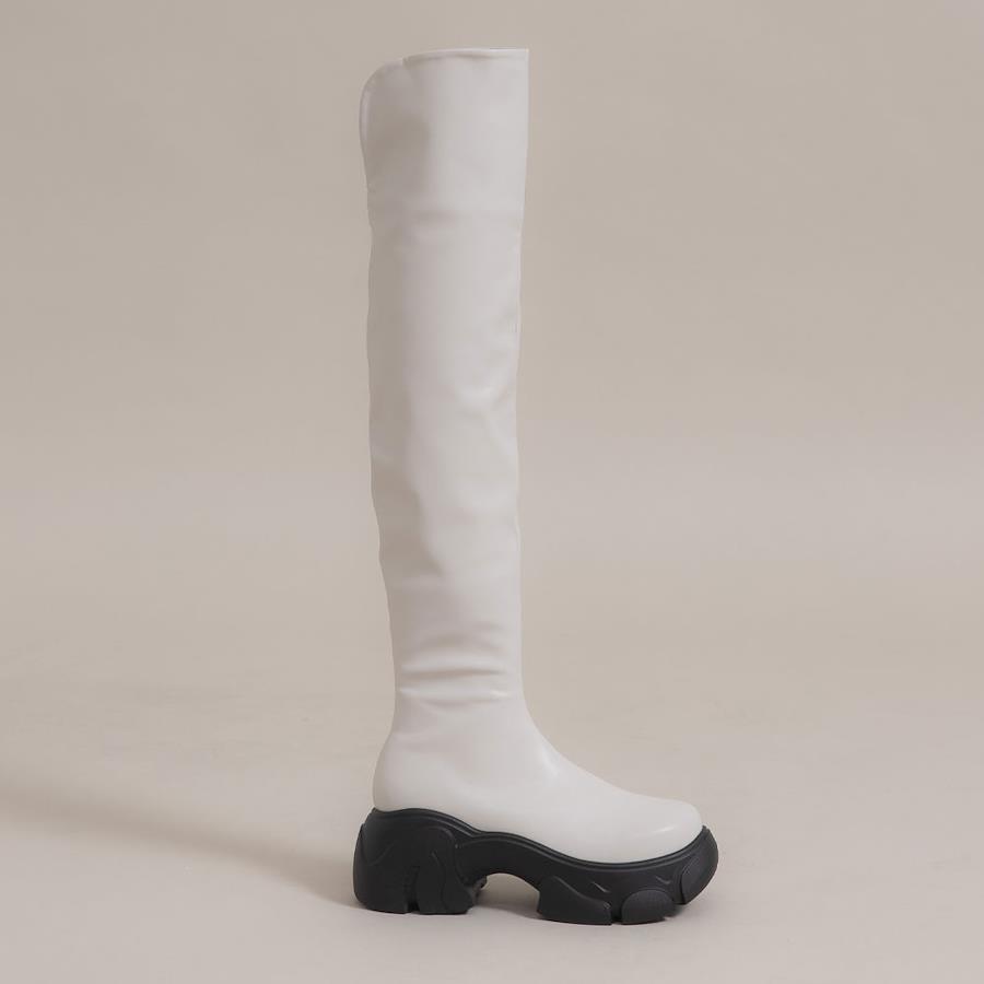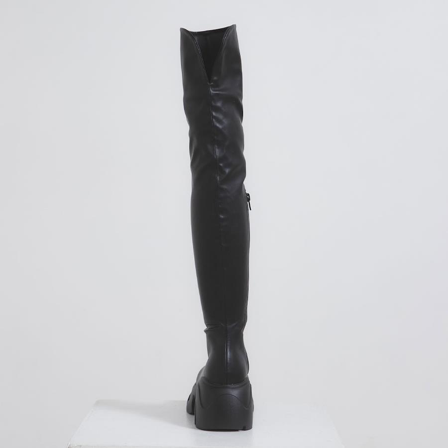 夢展望人気NO.1のニーハイブーツがRoseオリジナルデザインとなって新登場♪【デザイン】ボリューム感のある厚底ソールとまるいトゥデザインで、ガーリースタイルにも履きやすいデザインのニーハイブーツ。スリットや筒丈をはじめ、計算されたシルエットが程よくフィットしてくれ、ズレ落ちにくくストレスフリーに履いていただけます。ヒール6.5㎝、ストーム4.5㎝と高低差が少なく安定感があるのに、脚長&美脚効果抜群でモデル級バランスに◎内側にはサイドファスナー付きで脱ぎ履きがとっても楽ちんです♪※スリムタイプの筒幅となりますので、タイツやソックスをご着用になる方や筒幅にゆとりをご希望の方は、ワンサイズ上のサイズをご購入いただくことをおすすめいたします。【素材】シーズンムード高まるスウェード素材と、合皮素材の2種類を使用しています。スウェード素材は柔らかく、スムース合皮素材は張り感のある素材感です。【コーディネート】ミニ丈ボトムと相性抜群のニーハイブーツデザインで、Y2Kやバレエコア等のトレンドスタイリングもお楽しみいただけます♪足の露出を最大限に抑えてくれるので、寒い季節も防寒してくれてこの秋冬大活躍間違いなしのアイテムです!※こちらの商品は筒幅が細身の【スリムタイプ】になっております。筒幅サイズをご確認のうえ、ご購入いただくのをおすすめします。※スエード素材については、摩擦による色移り・色褪せの可能性がございますので水分や湿気の多い雨の日のご使用はお控えください。《生産国》中国