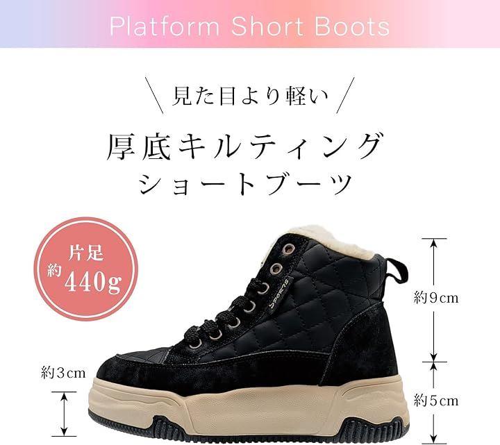 フラットな厚底で、クッション性のある軽量ソールだから安定感抜群。ブーツの中はファー仕様で暖かさも履き心地も抜群の厚底ショートブーツです。