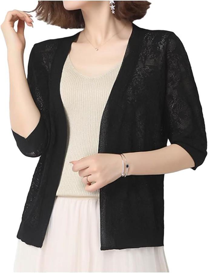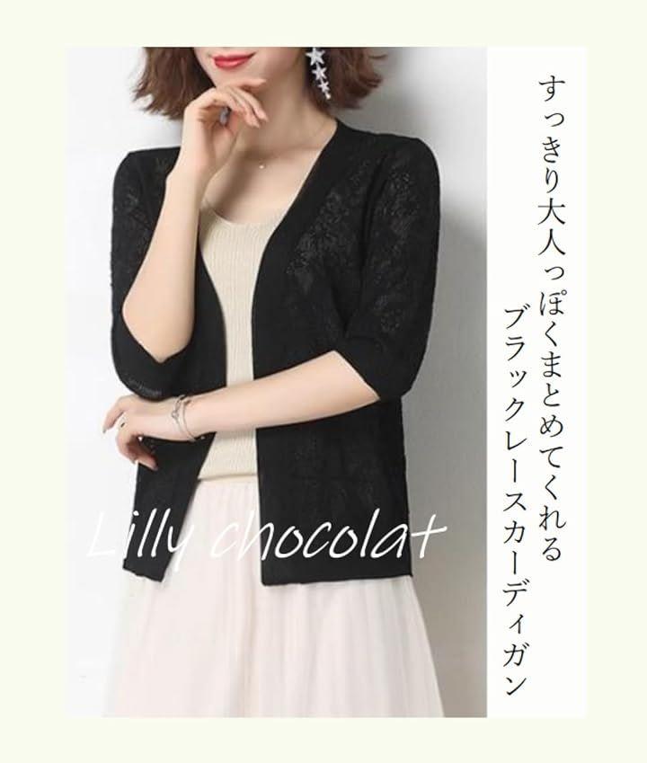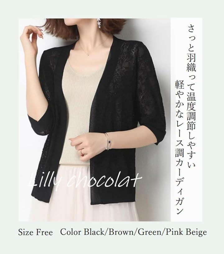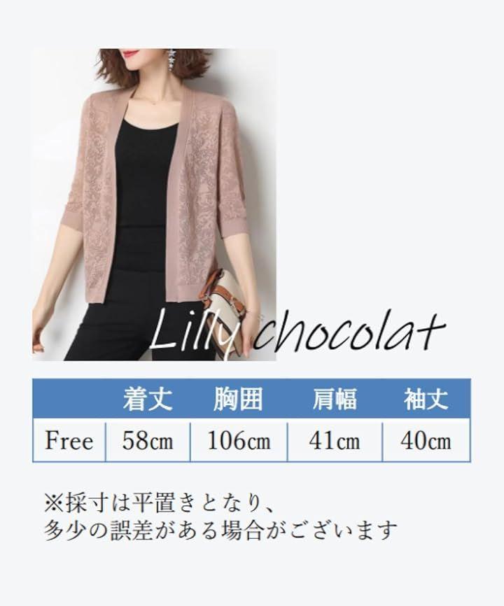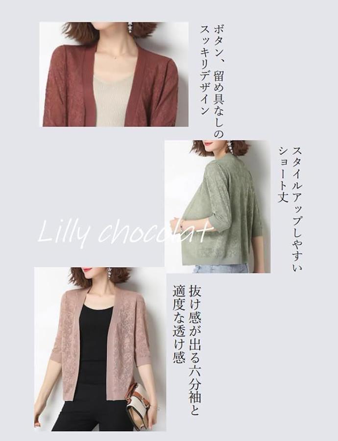 シンプルデザインが落ち着く薄手の六分袖レース調カーディガンです。