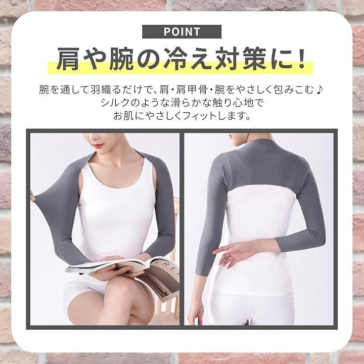 腕を通して羽織るだけで、肩・肩甲骨・腕をやさしく包みこむ。