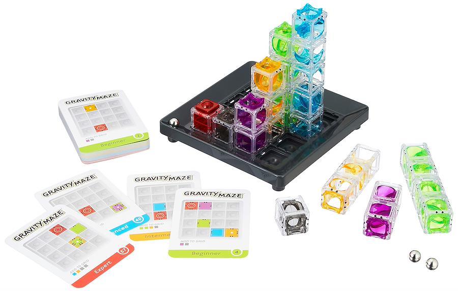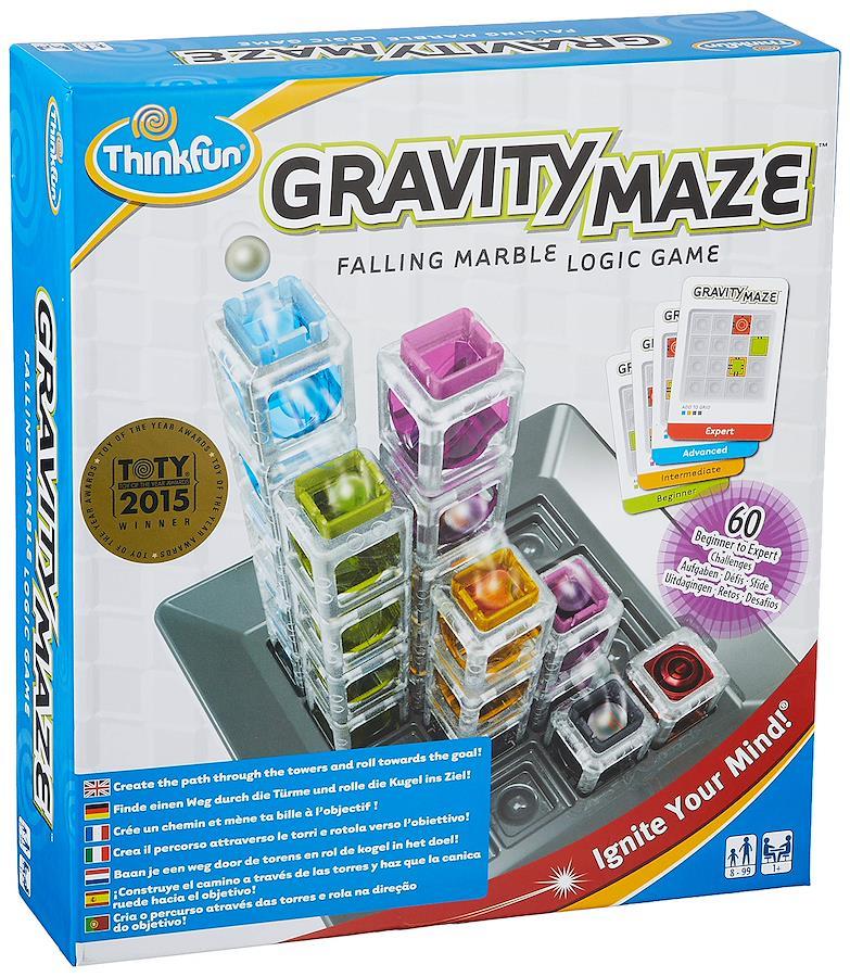 論理的思考力や問題解決力、数理的考察力など 思考力を育むために最適なゲームを開発し、世界中で数々の賞を受賞する教育ツールを開発するThinkFun (シンクファン)社のグラビティ・メイズ。ボールの通り道がふさがらないようにスタートとゴールを繋ぐタワーを配置するには? 立体的に考え、ソリューションを導き出す重力迷路ゲーム。結論が考え組み立で重力迷路!