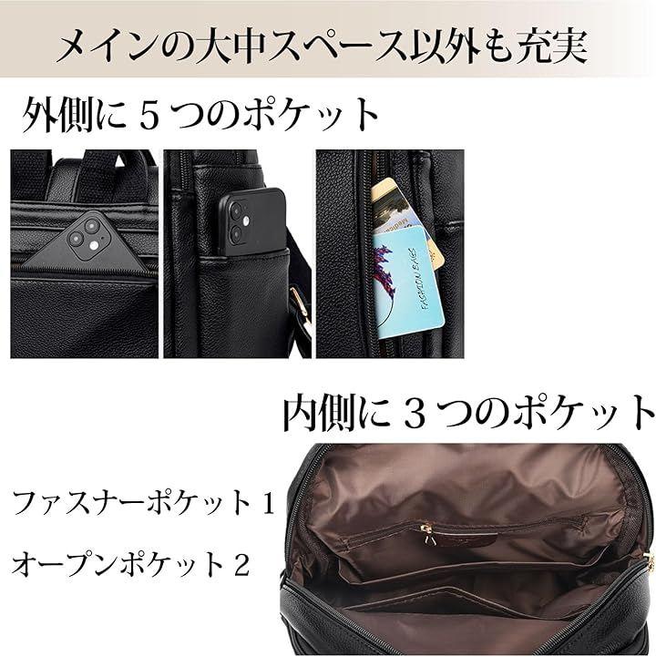 *本体:高さ33x横幅 26x厚さ 15cm(ポケット部含む) 重さ630g *ストラップ長さ調整可能 *素材:PUレザー 裏地:ポリエステル