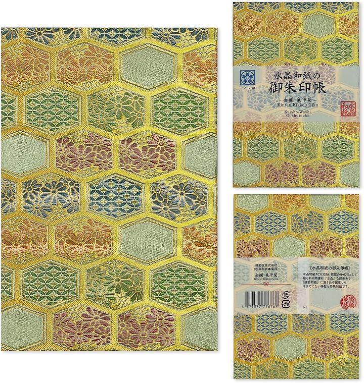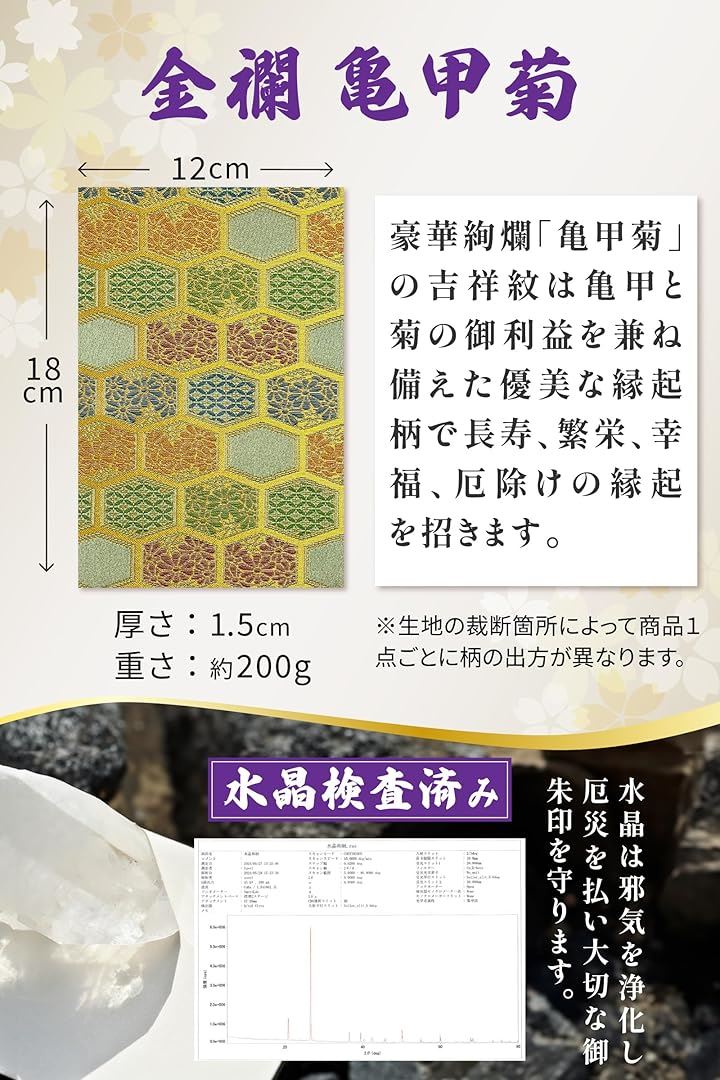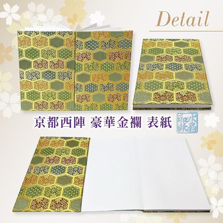 「サイズ」(約)縦18cmx横12cmx厚み1.5cm、重量:約200g 「表紙」京都 西陣 織物 高級金襴 「中紙」水晶入り越前和紙(特殊加工紙)