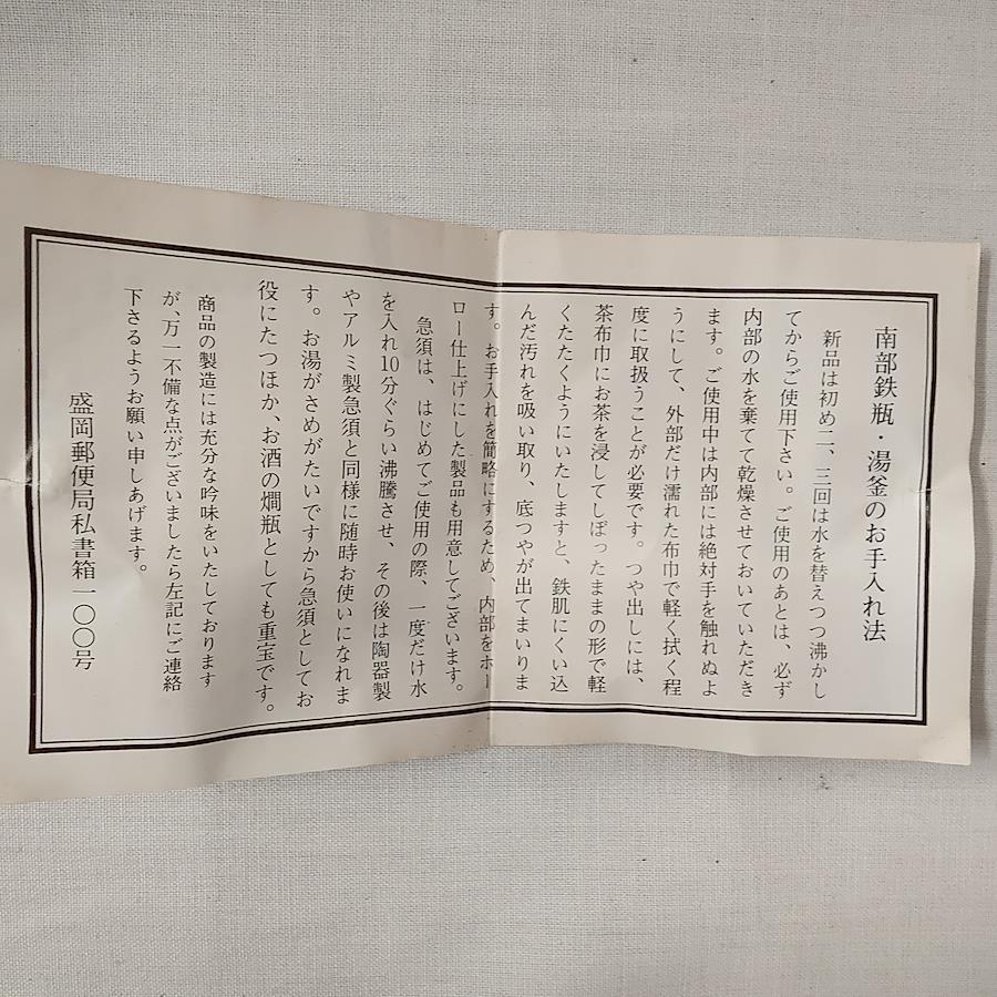 未使用 南部鉄器 南部鉄瓶。日本の代表的鉄器工芸品です。