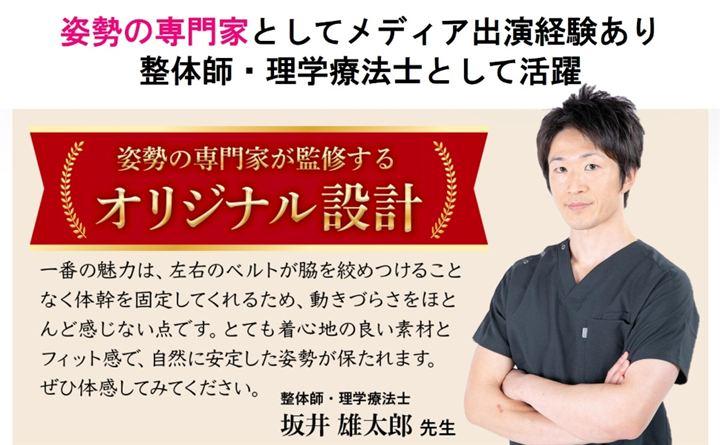 「キャリア15年以上の理学療法士監修」姿勢の専門家としてメディアにも出演経験のある坂井雄太郎先生が監修する姿勢サポーターです。