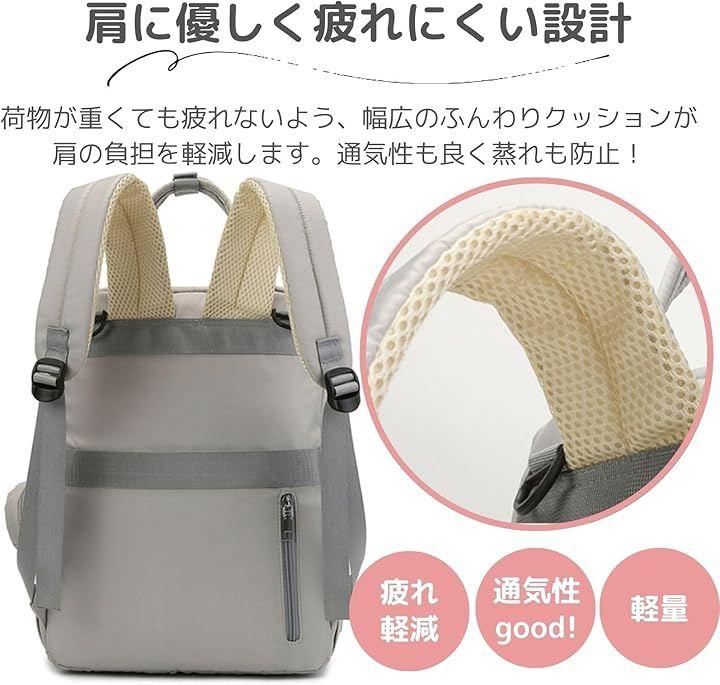 ・サイドポケット:おしりふきやペットボトルの収納に最適 ・背面ファスナー:背負ったまま荷物にアクセス可能 ・防水加工:突然の雨でも中身をしっかりガード