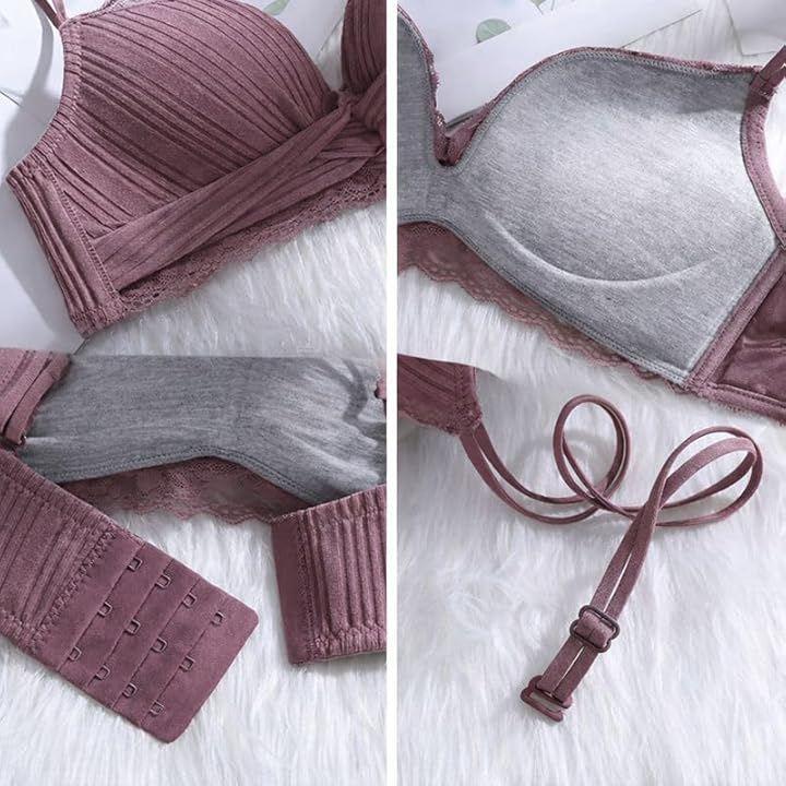 This wireless bra offers a flattering back, a soft feel, a cute design, and a comfortable fit. It's comfortable and comfortable, with breathable shoulder straps for a comfortable fit. Made of cotton.
