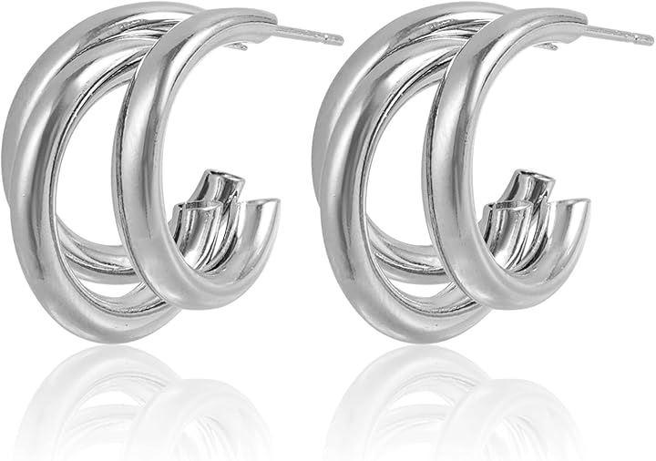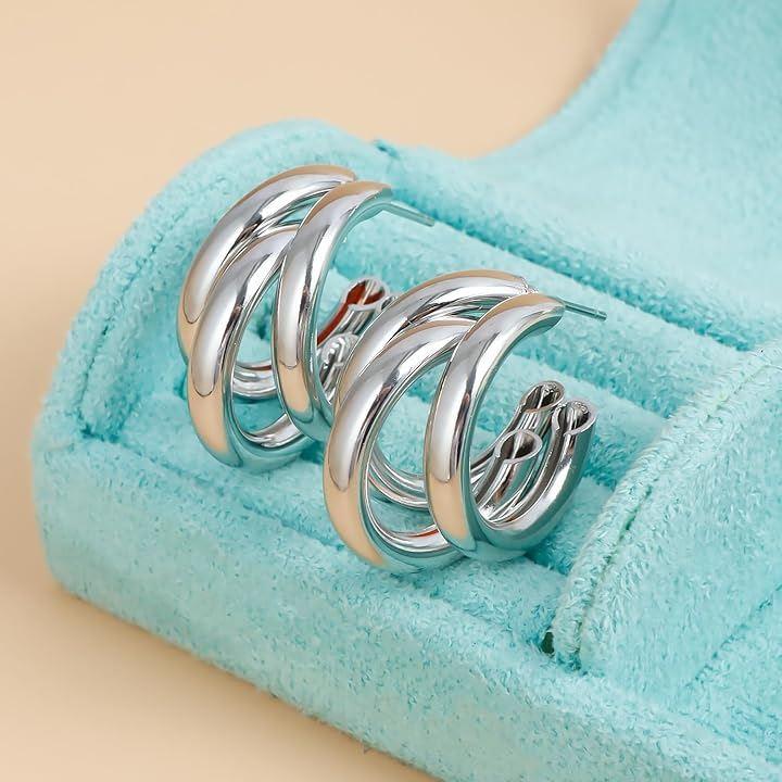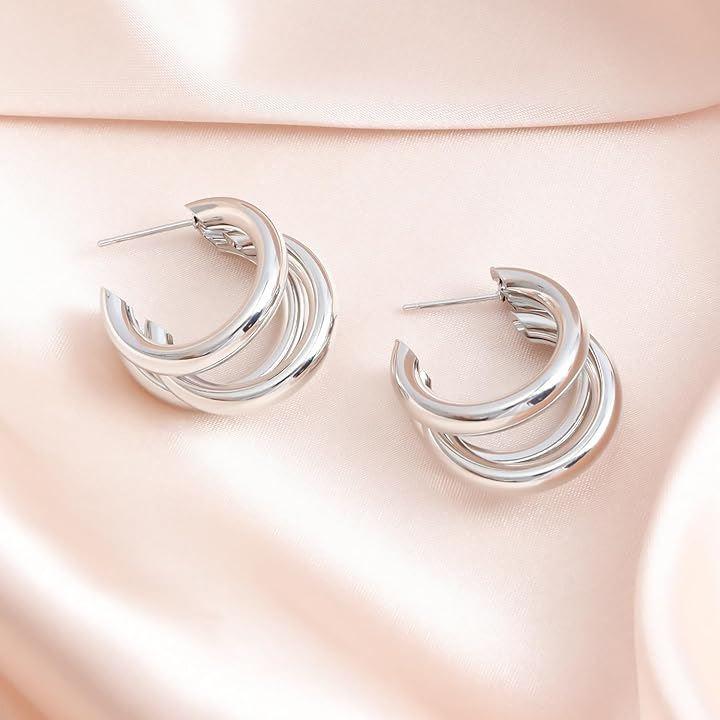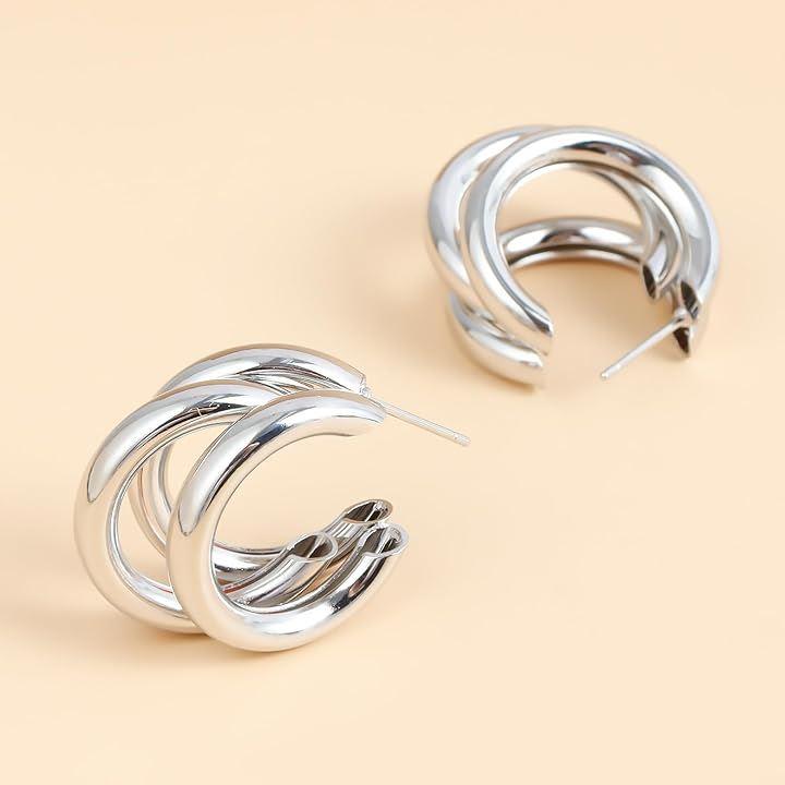 「デザイン」鮮やかなデザインの三連リングピアス。存在感たっぷりで、韓国ファッションを彷彿させるスタイリッシュなアクセサリーです。