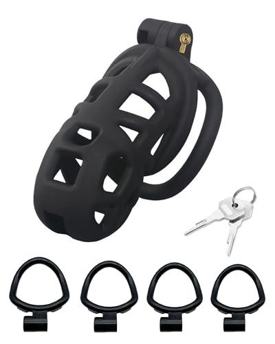 Tibemi貞操帯 メンズ ていそうたい男性器 貞操具 ナイロン樹脂製 四つの貞操リング付き 貞操体 鍵付き おしゃれなヘビの設計 貞操ロック コックロック 貞操ケージ 拘束具 アダルトグッズ Mの長さ:90mm