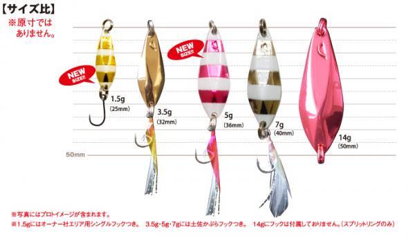 鉛に比べ“比重が軽く”、また特徴のある非対称ボディ形状は、他のメタルルアーには真似の出来ない“トリッキースイム”、ヒラヒラ“スローフォール”、トゥイッチやジャーク時には“イレギュラーダート”といった独特のアクションを生み出します!