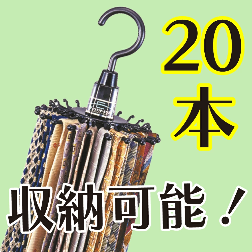 【商品情報】20本のネクタイをきれいに収納回転式でネクタイを選びやすい滑り落ち防止ストッパー付【生産国】日本