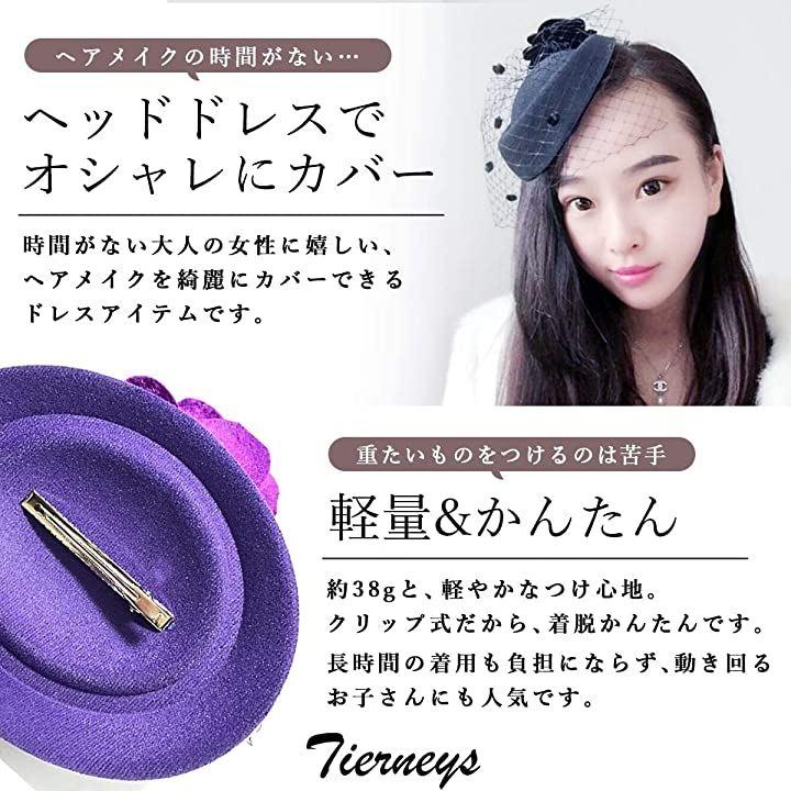 取付簡単、和装、洋装どちらにもマッチフェルト生地の大きなバラの飾りをフロントにしてかぶることでキュートな印象をもたせたり、バラをバックにチュールを垂らすことでシックな印象を与えたり、イベントや場面に応じて使い分けられます。