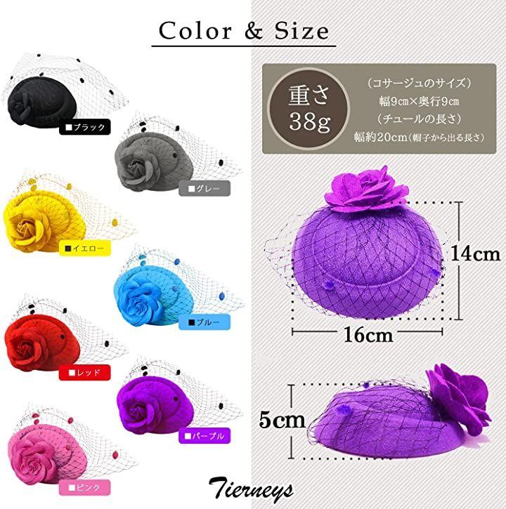 「カラーバリエーション」黒赤(チュール黒)白ピンク赤(チュール赤)、ベージュ紫、「サイズ」フリーサイズ、直径:約16cmx約14cmx高さ:約5cm「重量」約38g「注意点」サイズは採寸していますが、多少の誤差をご了承ください。
