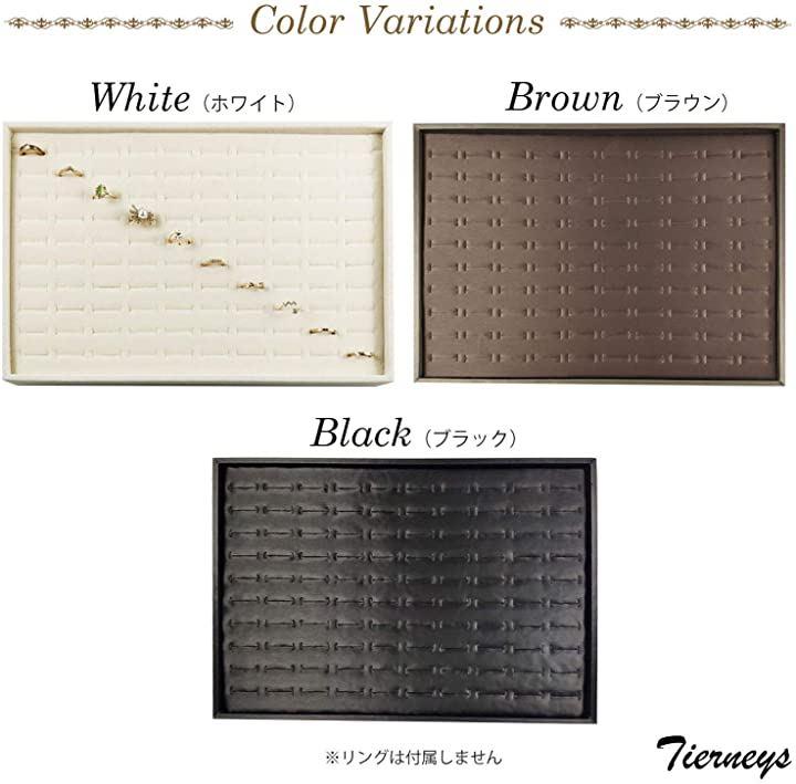 ご自宅でもリングやピアス、イヤリングの収納、コレクションに大活躍商品情報カラー:ホワイト/ブラウン/ブラックサイズ:高さ3cm/横35cm/縦25cm重量:約265g最大100個のリングが収納できます