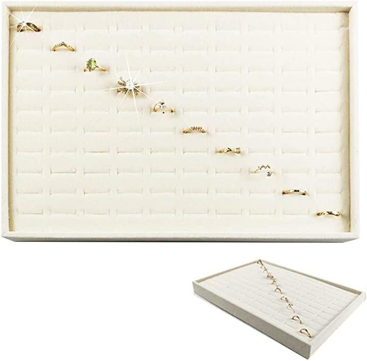 ゴチャゴチャしがちなリングを綺麗に並べて、間隔を開けてリングを配置することで、商品をより綺麗に展示したり、個人のコレクションを見やすく整理整頓してみてはいかがでしょうか?100個のリングの収納が可能縦10x横10(合計100個)のリングを1つのトレーで収納・保管する事が可能です。