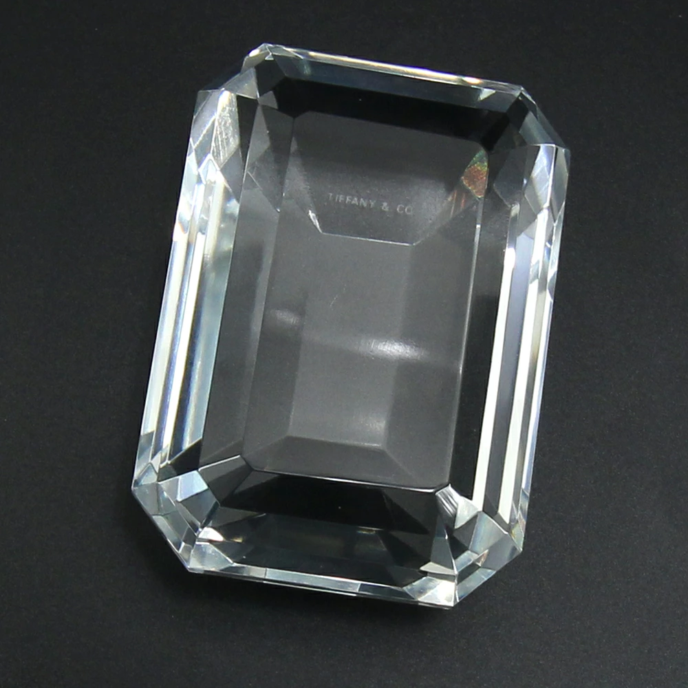 Tiffany & Co. Paperweight, Emerald Cut Motif, Clear Crystal, Pre-owned, Interior Ornament, TIFFANY & CO.