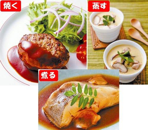素材・材質:本体=フェノール、本体・蒸しプレートとっ手=ポリプロピレン、深なべ・蒸しプレート・ガード=アルミ、ガラスふた=強化ガラス・アルミ、ふたとっ手・深なべとっ手=SPS、揚げあみ=ステンレス