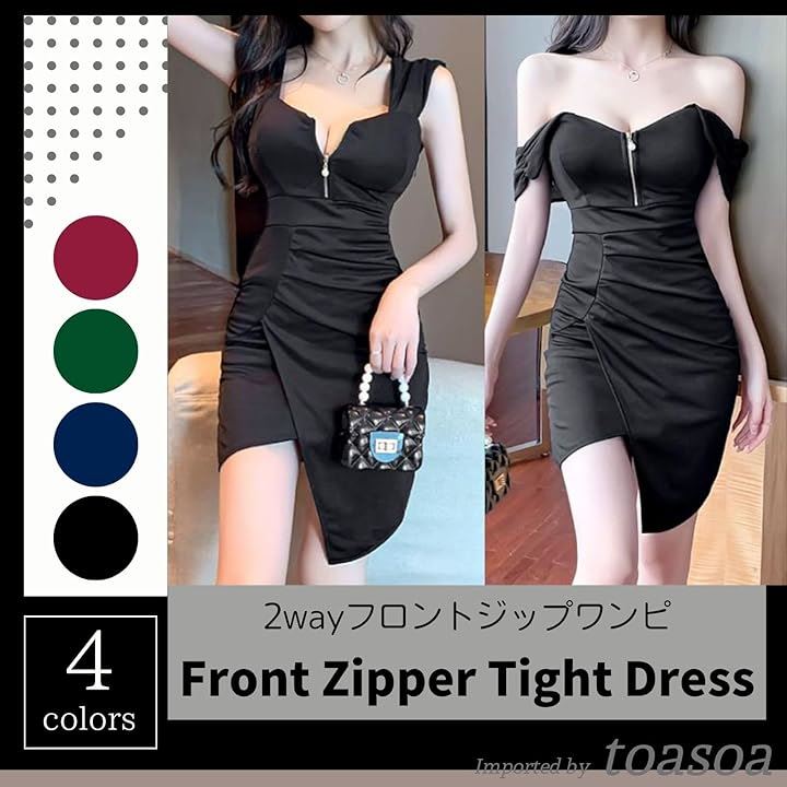 シンプルながら胸元に人気のファスナーデザインでお洒落な大人女子を演出します。