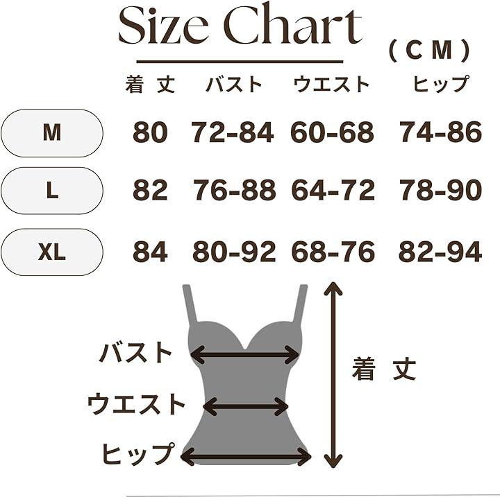 XLサイズ:着丈84cm、バスト80~92cm、 ウエスト68~76cm、ヒップ82~94cm
