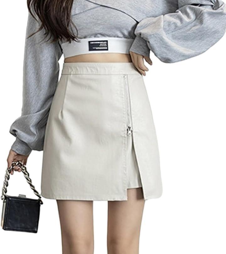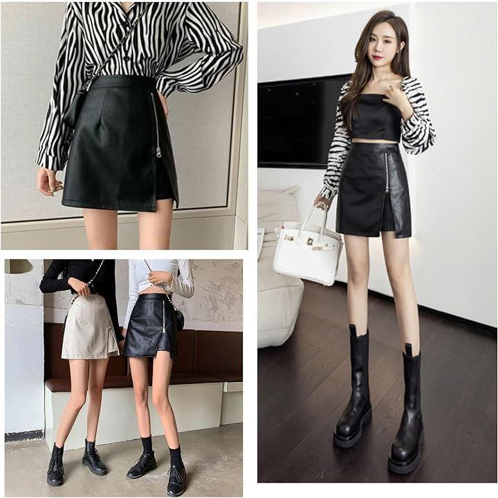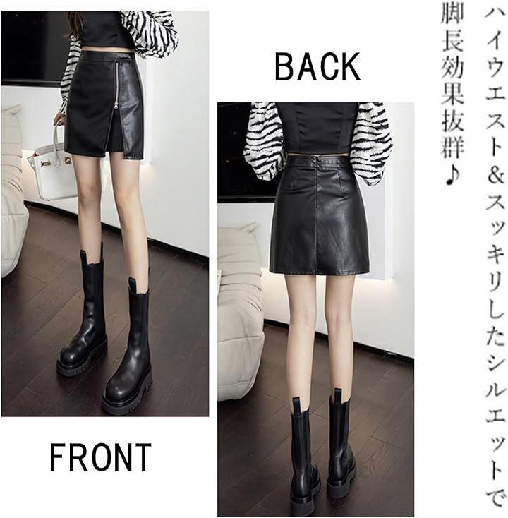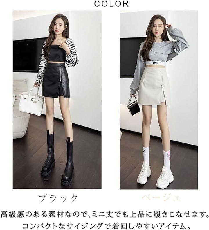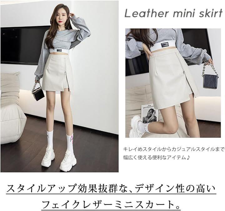 ファスナーデザインがアクセントでお洒落なフェイクレザーミニスカートです。