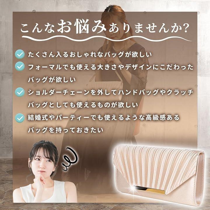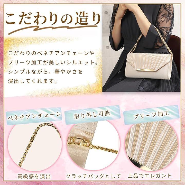 どんなフォーマルドレスにも合わせやすいエレガントな光沢色で、結婚式、披露宴、二次会、謝恩会、懇親会、パーティー、会合などのお呼ばれシーンはもちろん、入学式や入園式、卒園式や卒業式など、フォーマルバッグ、セレモニーバッグとして様々なシーンで重宝するアイテムです。・お色はシャンパンゴールド。