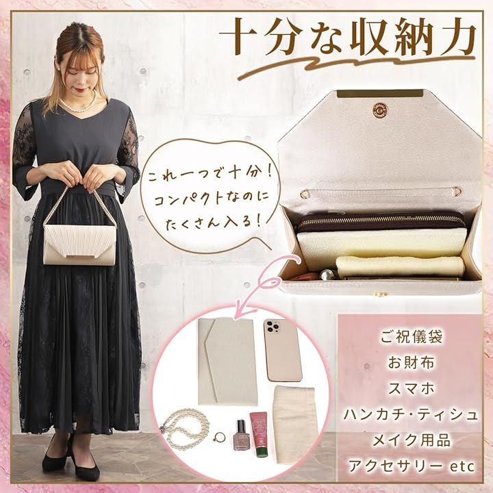 大容量設計なので、ご祝儀袋、長財布、スマホ、カメラ、ハンカチ、化粧ポーチなどいろいろ収納できるのがポイントです。片手でらくらく開閉できるマグネットタイプ。