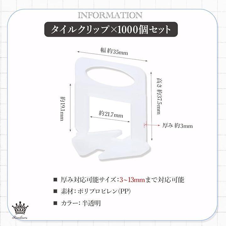 こちらのタイル用クリップ スペーサークリップはタイルの厚さが3mmから最大13mmまで対応可能です。