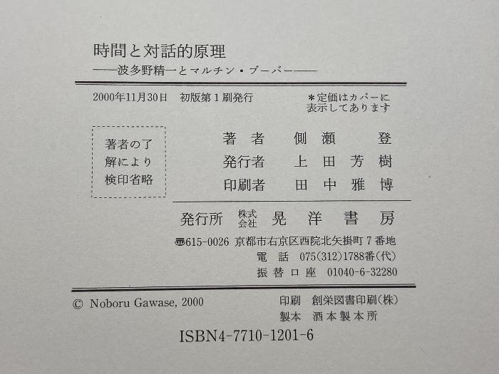 Time and the Dialogical Principle: Seiichi Hatano and Martin Buber, Koyo Shobo, Noboru Sodase