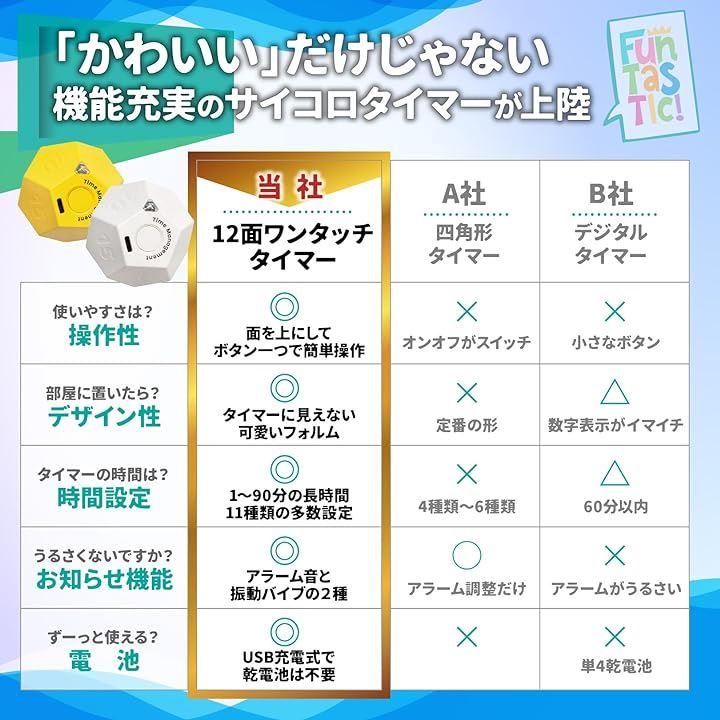 サイコロタイマーは、充電式、電池容量は450mAhでバッテリー長持ち。