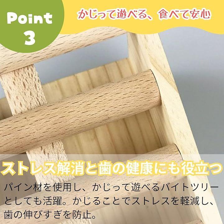 「ストレス解消と歯の健康にも役立つ」天然の松材を使用し、かじって遊べるバイトツリーとしても活躍。