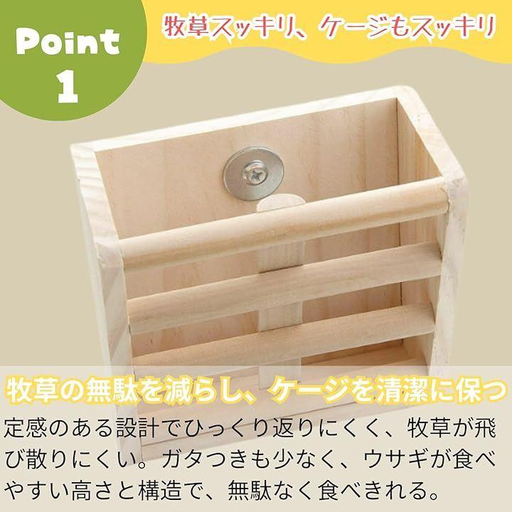 「牧草の無駄を減らし、ケージを清潔に保つ」安定感のある設計でひっくり返りにくく、牧草が飛び散りにくい。