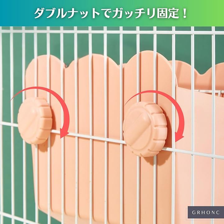 「カラー」ホワイト/ピンク「サイズ」幅約25cmx高さ約20cmx奥行約12.5cm「素材」高品質ポリプロピレン(PP樹脂)・防錆コーティングスチールワイヤー「機能」ケージ内外2WAY設置/ダブルナット固定/前面メッシュ取り外し可能・丸洗いOK/大容量設計/波型イージーアクセス設計「対応動物」うさぎ・モルモット・チンチラ・デグーなど小動物全般
