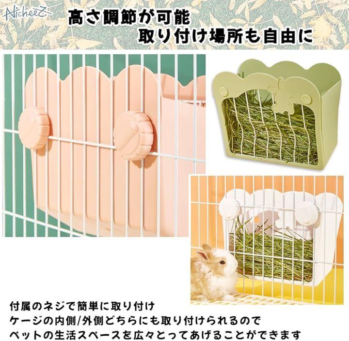 牧草が落ちにくい網型の設計で、ケージ内や周りに牧草が散らかるのを防ぎ衛生的なデザインです。