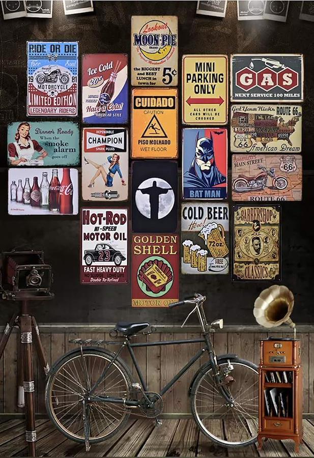 ヴィンテージアメリカをモチーフにしたブリキの看板です。