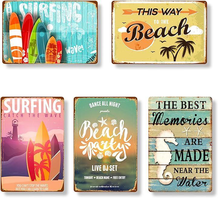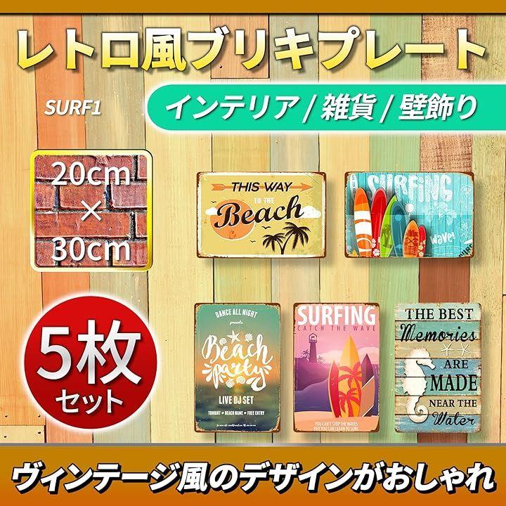 Tin sign, surf, beach, wall decoration, American plate, interior, retro, miscellaneous goods, antique, vintage style