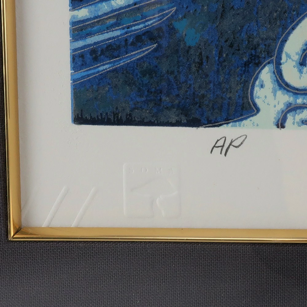 ※商品ランクは作品本体に対してのもので、額縁の状態は含んでおりません。※額縁にはキズや汚れがございます。また、保存袋は全体的にシミがございます。外箱には、赤いガムテープが貼られています。(画像参照。)