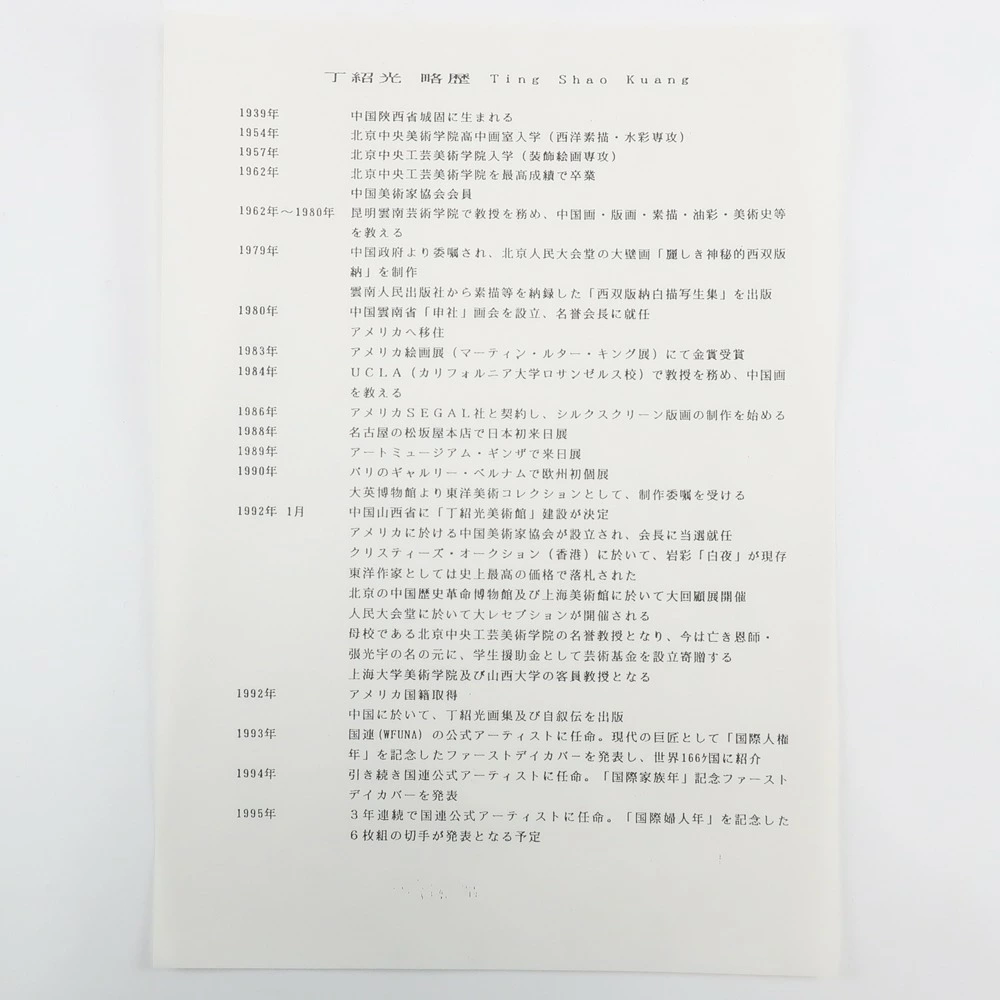 | 詳細備考 | ・作家:丁 紹光 TING SHAO KUANG ティン・シャオカン・題名:『渓流の調べ』・技法:リトグラフ・エディション:AP 直筆サイン |