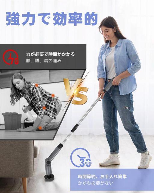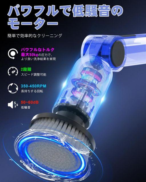 【2つの回転モード·効率的で柔軟】風呂掃除ブラシは2つの速度設定があり、電源ボタンをオンにして、ボタンを短く押すだけでモードを切り替え、回転速度は450RPMに達するため、力を入れずに洗剤を泡立てて(頑固な汚れを綺麗にする際は少しだけ押し込みながら使用して)50kgまで耐えられる強力なモーターを搭載し、頑固な汚れを簡単に除去し、表面をピカピカにし、掃除の手間を省きま。電動デッキブラシは、忙しい主婦/夫の頼もしい味方で、長時間の使用でも疲れにくい。ご家族やご年配の方へのプレゼントにも最適です。